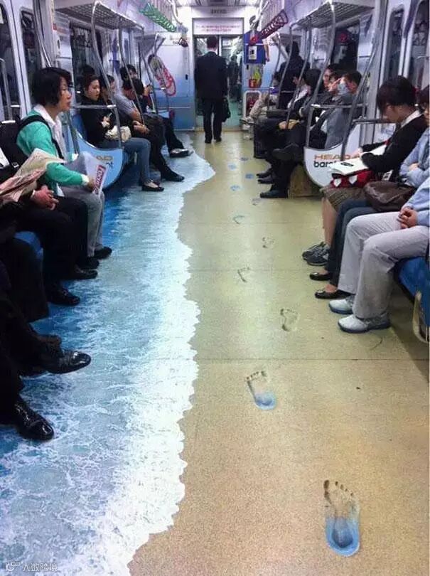 ↑↑这是韩国地铁里的度假广告。坐在“海浪”的对面,有一种海风徐徐吹过来的感觉。