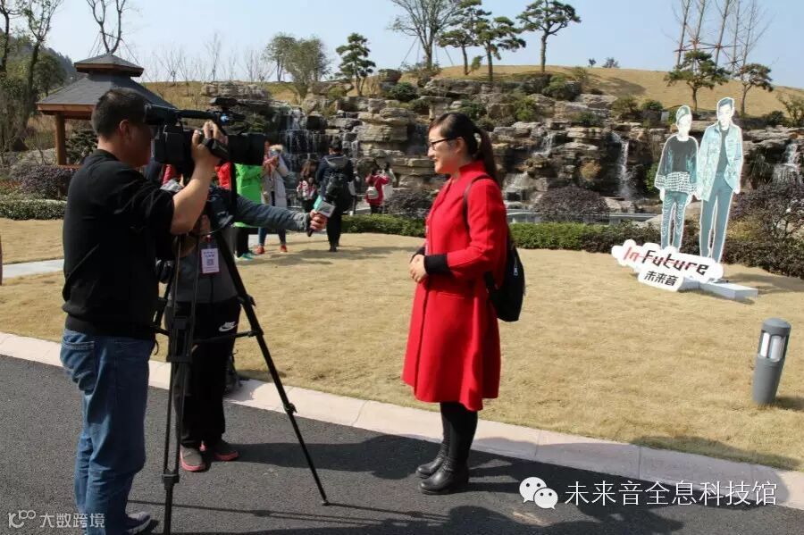 (客服人员正在介绍未来音全息科技馆)