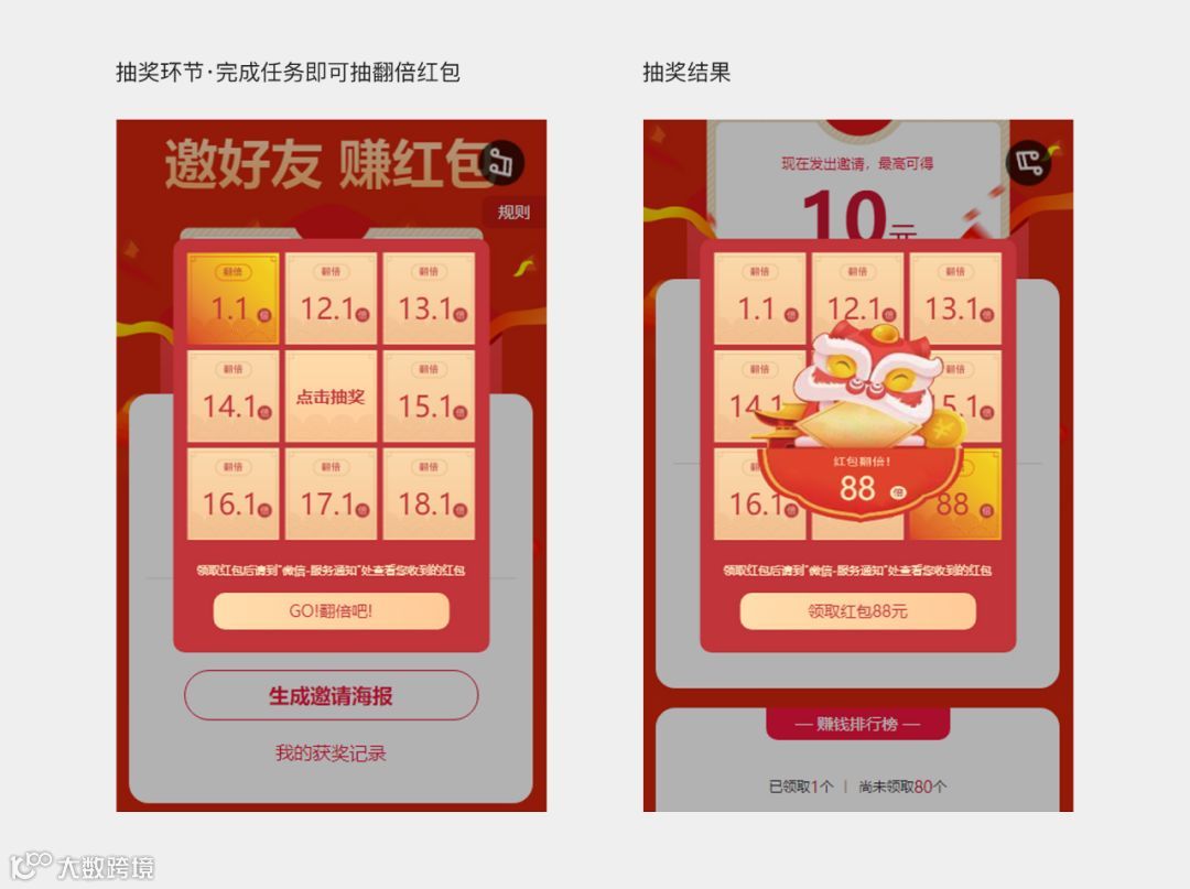 :是一款给用户派发红包,用户邀请新用户时给予一次翻倍机会的