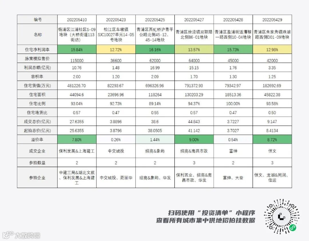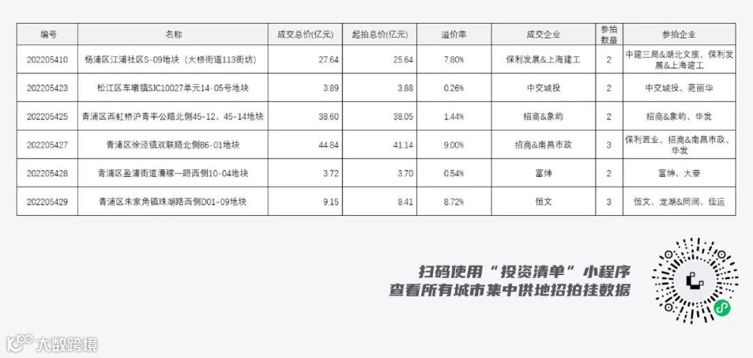 27日溢价率最高的土地是青浦区徐泾镇双联路北侧B6-01地块,由招商&南昌市政共同体拿下。