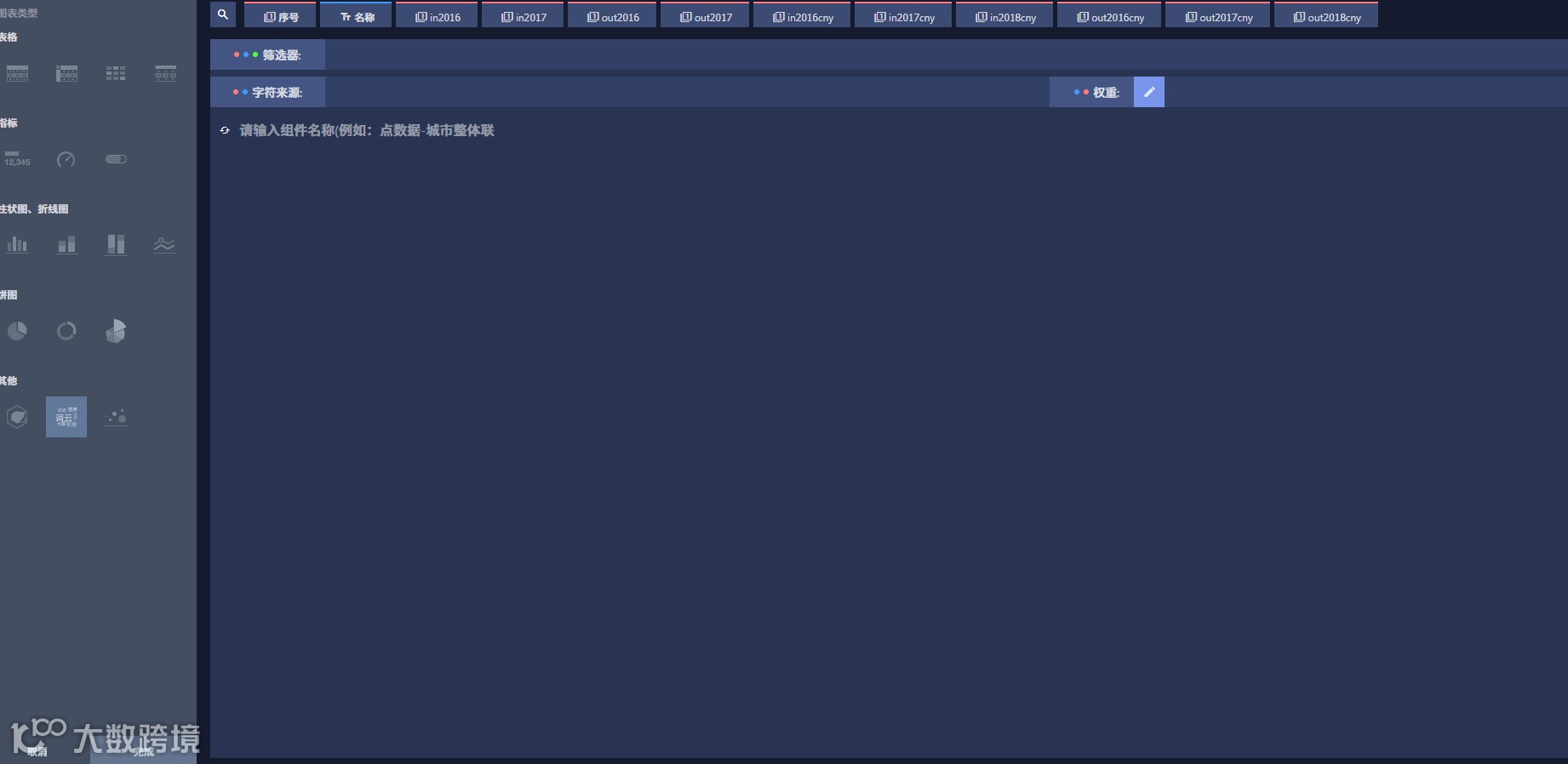 DataMap具有丰富的图表类型,已经覆盖的样式包括:表格/指标/柱状图/折线图/饼图/词云/雷达图气泡图等。