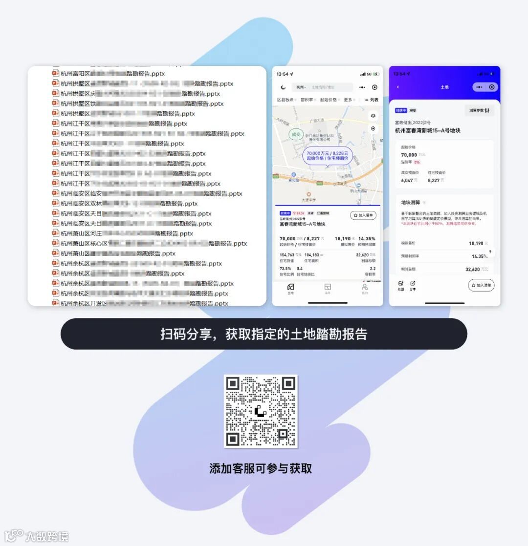 因此针对杭州2022批次土地,“投资清单”推出 分享得报告活动 。立即扫码参与👇👇👇