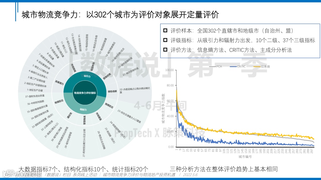 5月6日PropTech X 与 脉策科技 举办了「数据说」系列线上聊天活动第二期,邀请到做客嘉宾:同济大学中国交通研究院运输与物流中心主任林坦,同济大学中国交通研究院助理研究员、新驰咨询公司咨询顾问彭晨鹏,以及前德邦快递用户体验研究资深专家于鸿达,围绕「城市物流竞争力评价与物流地产投资机遇」这一话题展开精彩的分享,同时对线上观众提出的一系列问题进行了深度的讨论。