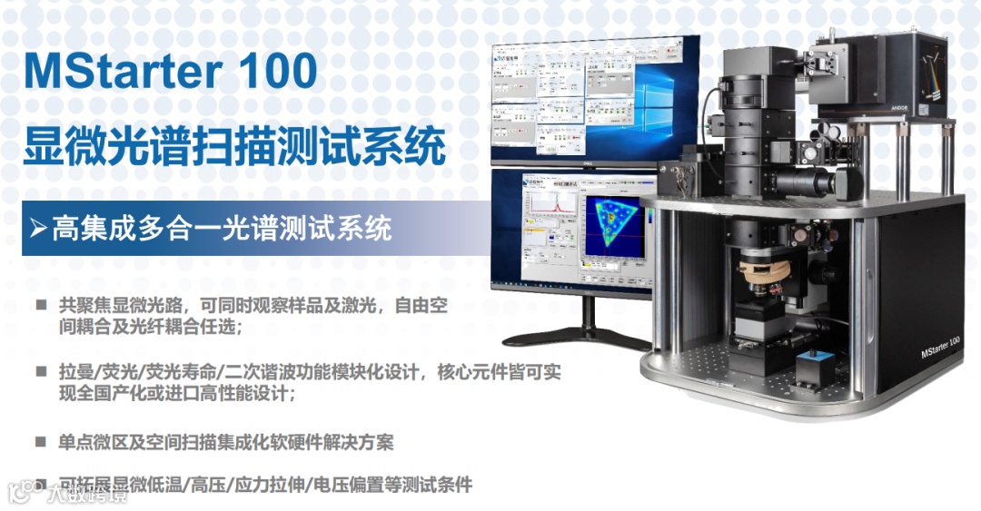 该测试系统集合了稳定的显微测试光路与专业的高速高分辨扫描技术,非常适合二维材料,量子点和钙钛矿等材料的显微光谱分析应用。