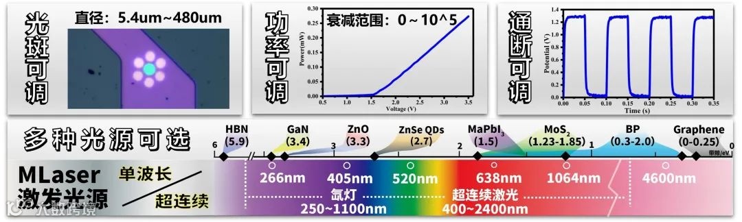 可以兼容多种测试光源,包括LED,激光器,氙灯,超连续激光,波长兼容250-5500 nm。 -