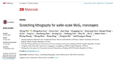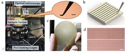 近日,中国科学院物理研究所/北京凝聚态物理国家研究中心纳米物理与器件重点实验室发展了一种全新的二维材料图案化的方法。该方法利用在手套箱中搭建的电动位移系统,通过金属钨针尖在二维材料表面的机械刮擦(Scratching lithography,SL)实现直写图案化。