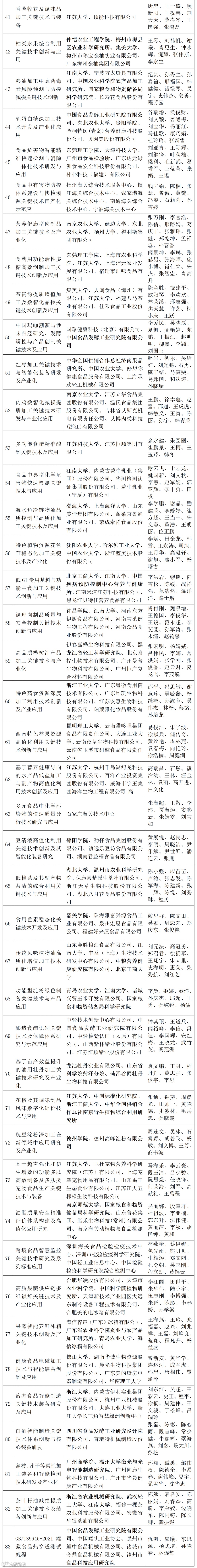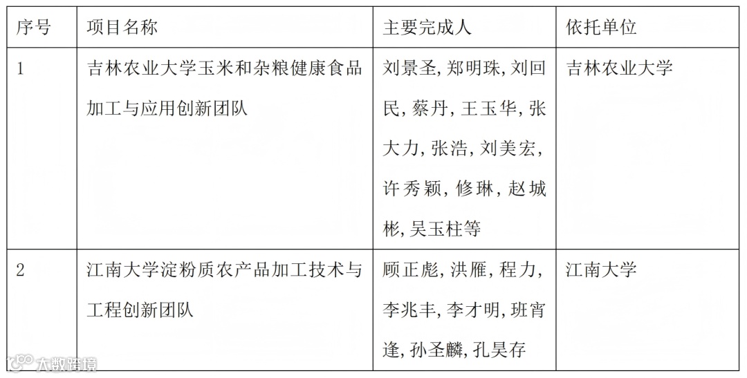 第四批入围的食品学界的团队名单: