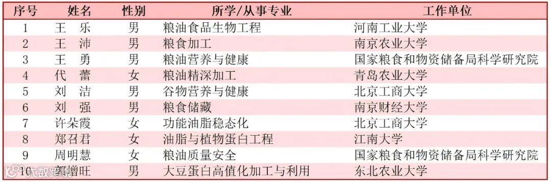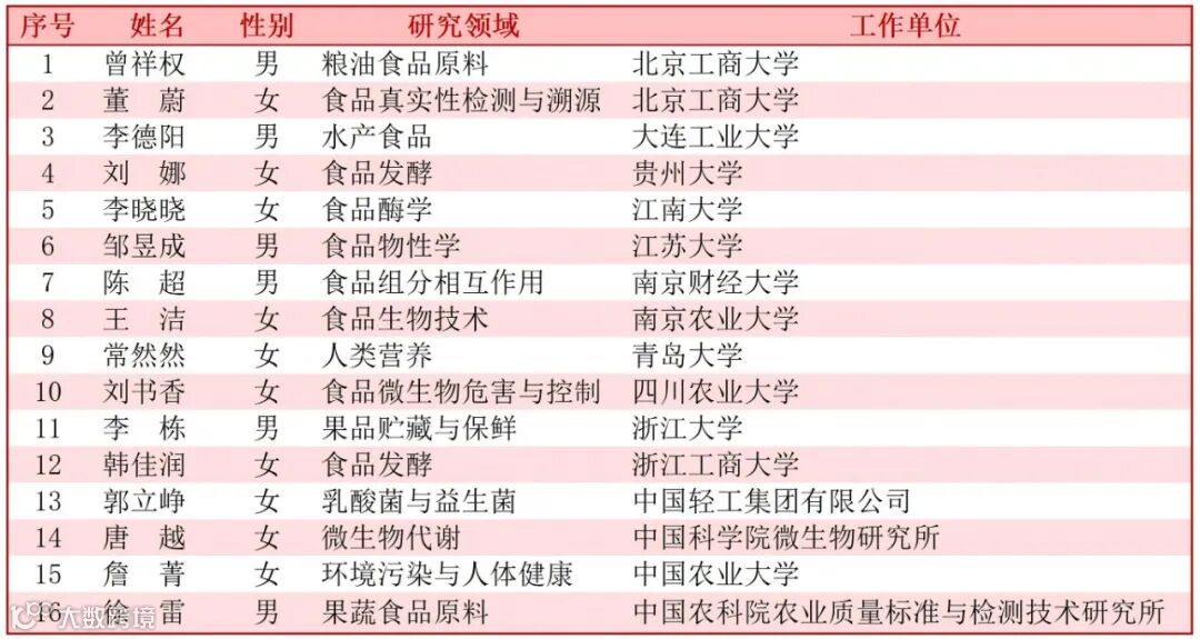 2月26日中国科协发布了第十届中国科协青年人才托举工程入选名单,其中食品学界入选者: