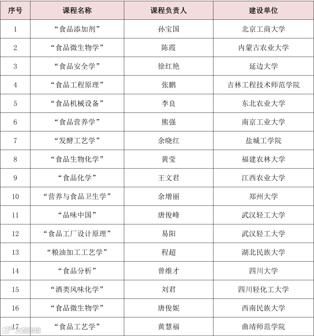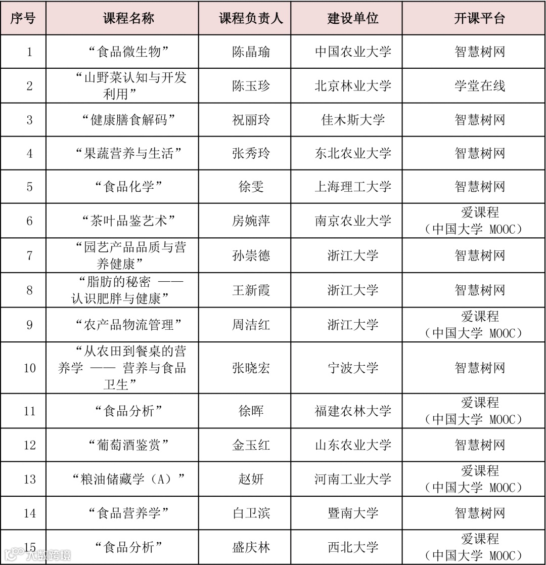 12月17日教育部公布了第三批国家级一流本科课程,其中涉食品专业的一流本科课程如下: