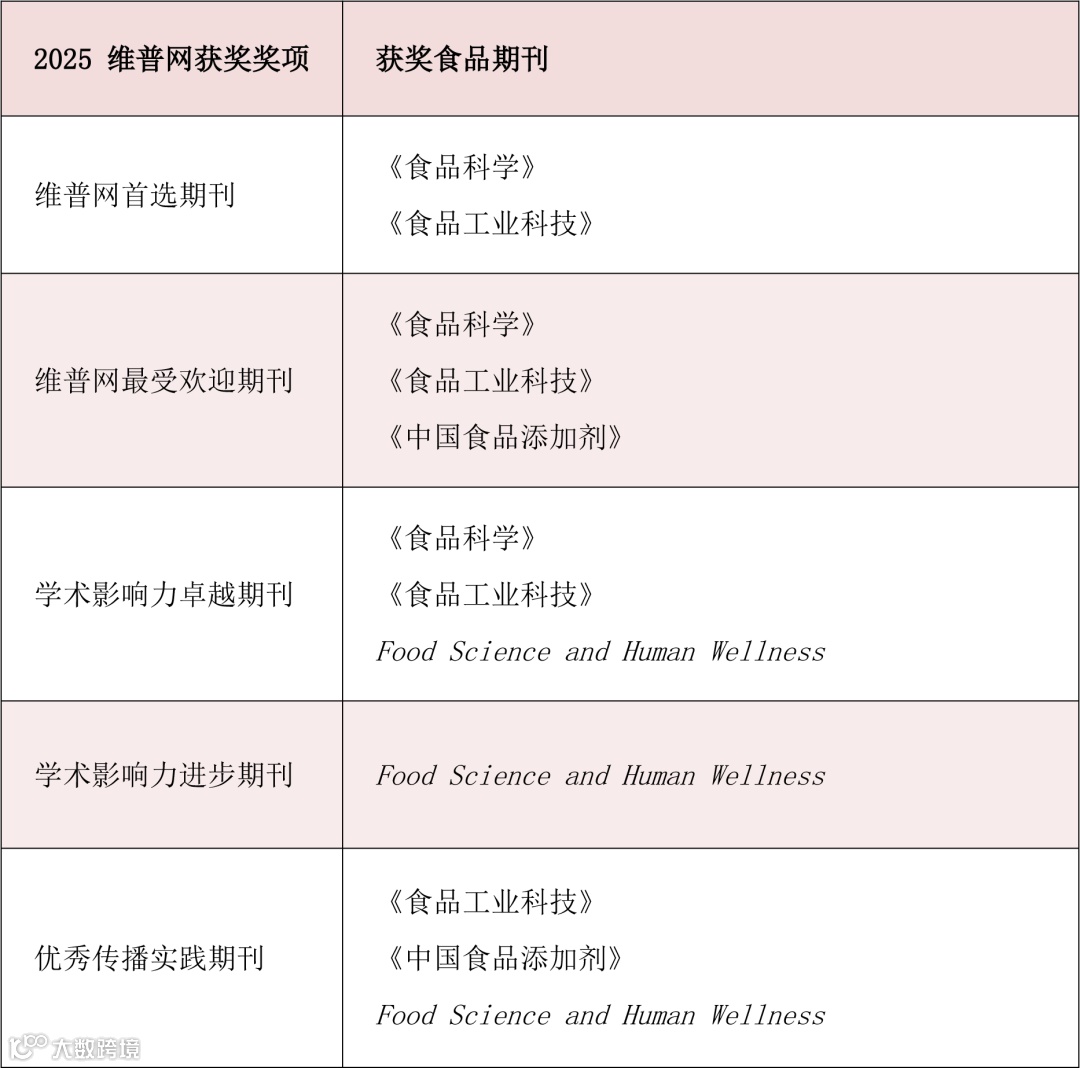 12月18日重庆维普资讯公布期刊获奖名单,其中涉食品领域的期刊有: