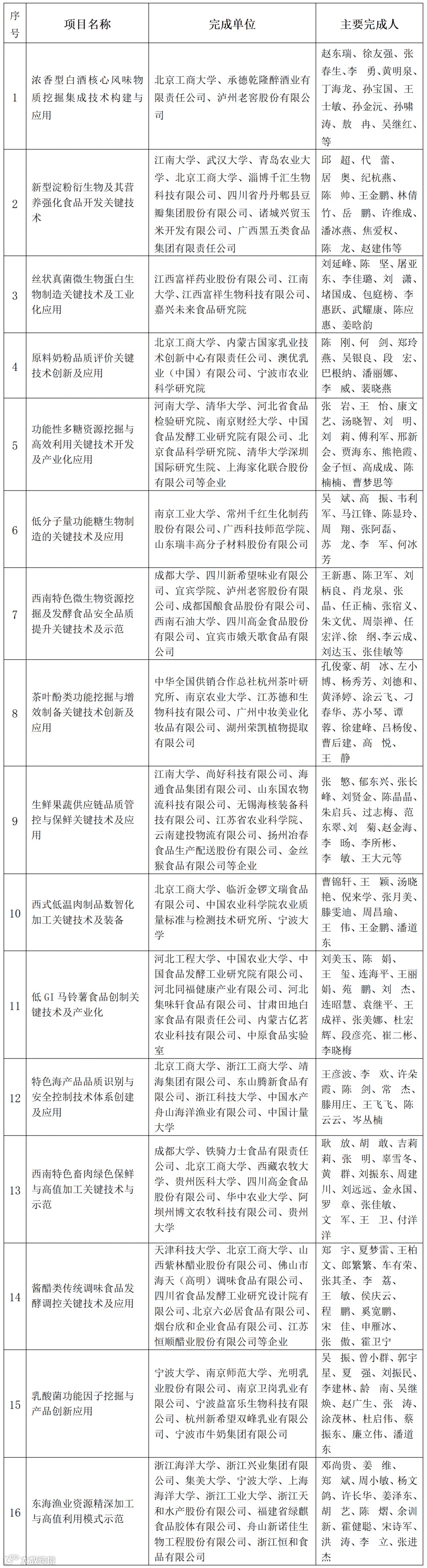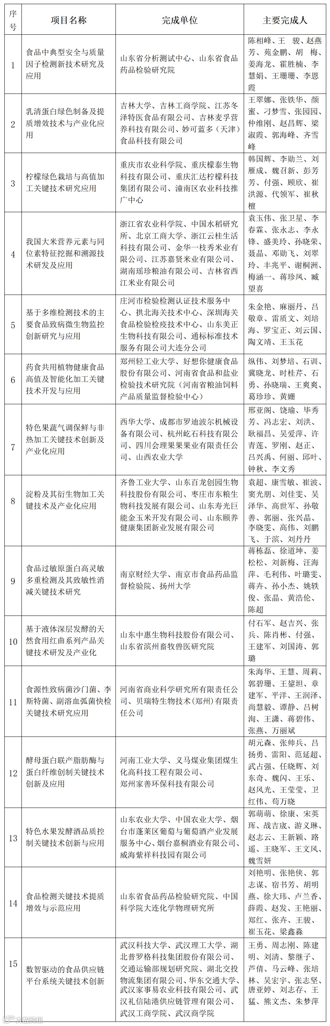 12月15日中国商业联合会公示了2025年度中国商业联合会科学技术奖项目,其中涉食品学界的如下: