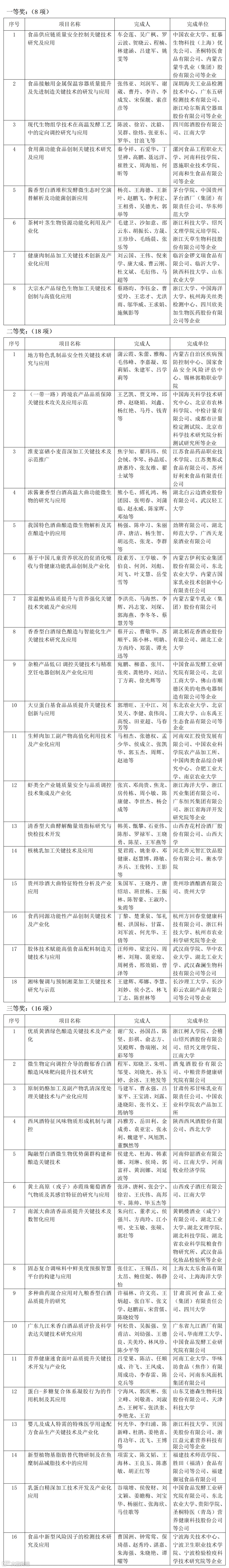 9月10日中国轻工业联合会公示的2025年度科学技术奖励评选结果,其中涉食品学界的奖项如下: