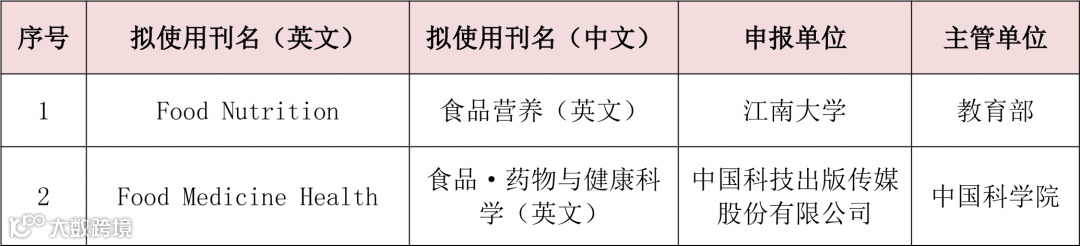 11月26日中国科学技术协会中国科技期刊卓越行动计划办公室公布入选2025年度中国科技期刊卓越行动计划二期高起点新刊的项目,其中涉食品领域的新刊如下: