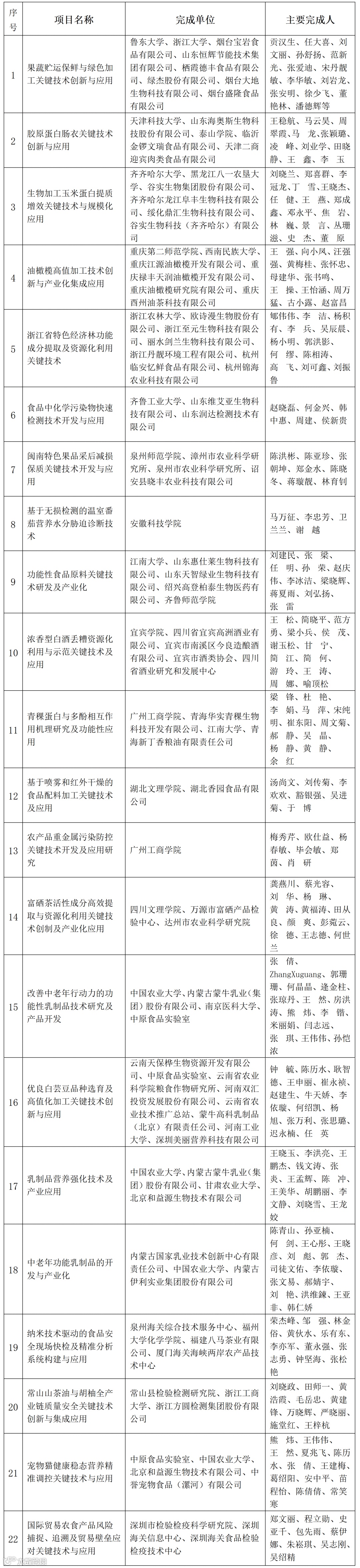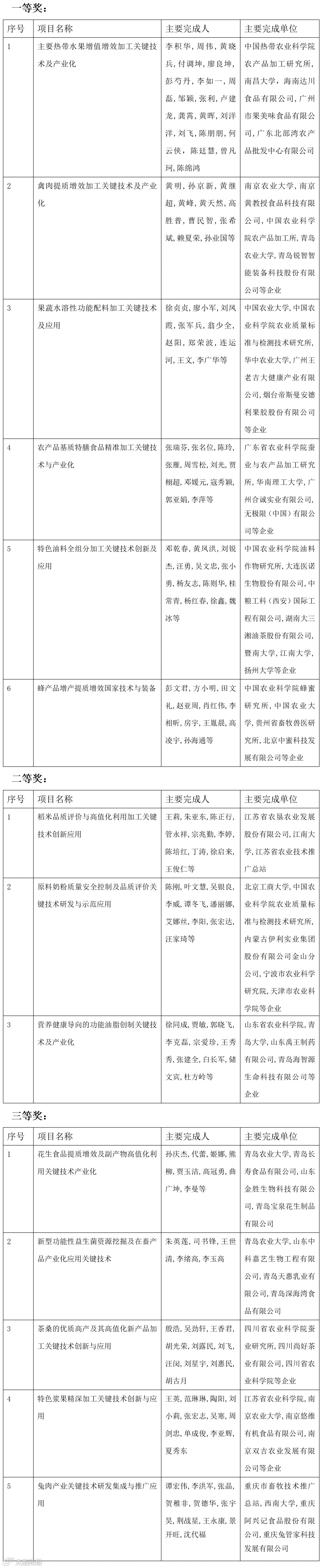 12月26日中国农学会颁发2022-2023年度神农中华农业科技奖,其中涉食品学界项目有: