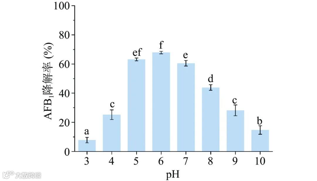 Figure 9. Effect of pH on the degradation of AFB1 by crude enzyme solution
