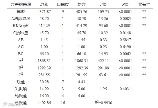 表 3 回归模型方程的方差分析