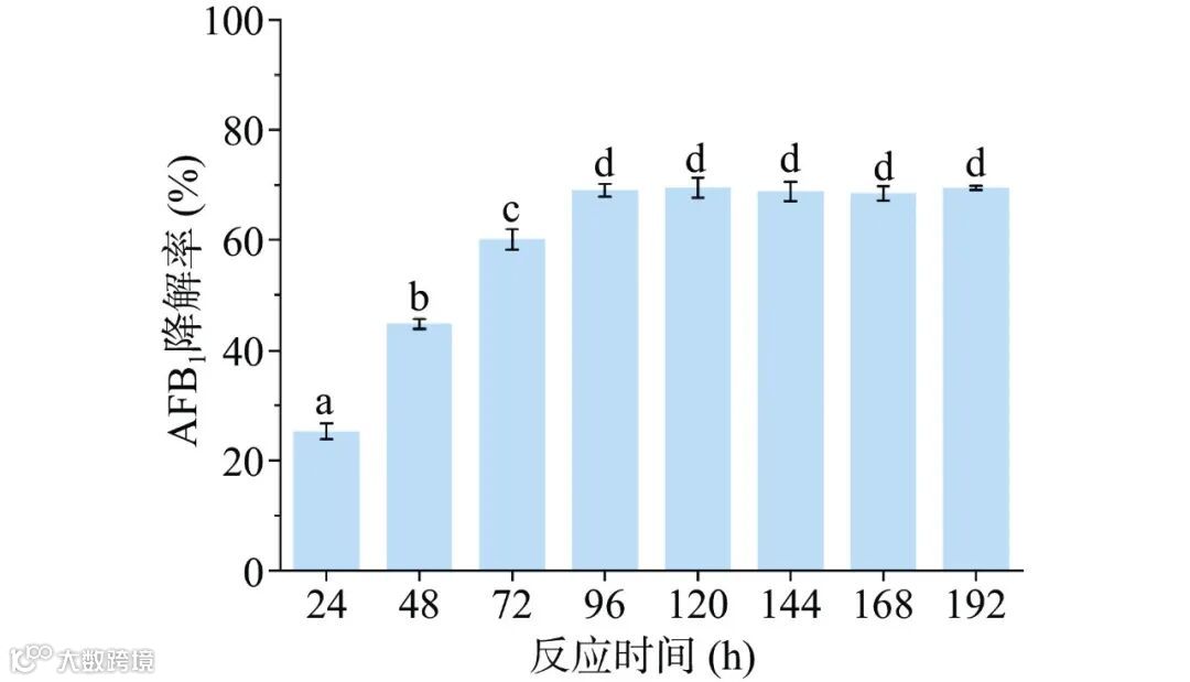 Figure 8. Effect of reaction time on the effect of crude enzyme solution on the degradation of AFB1