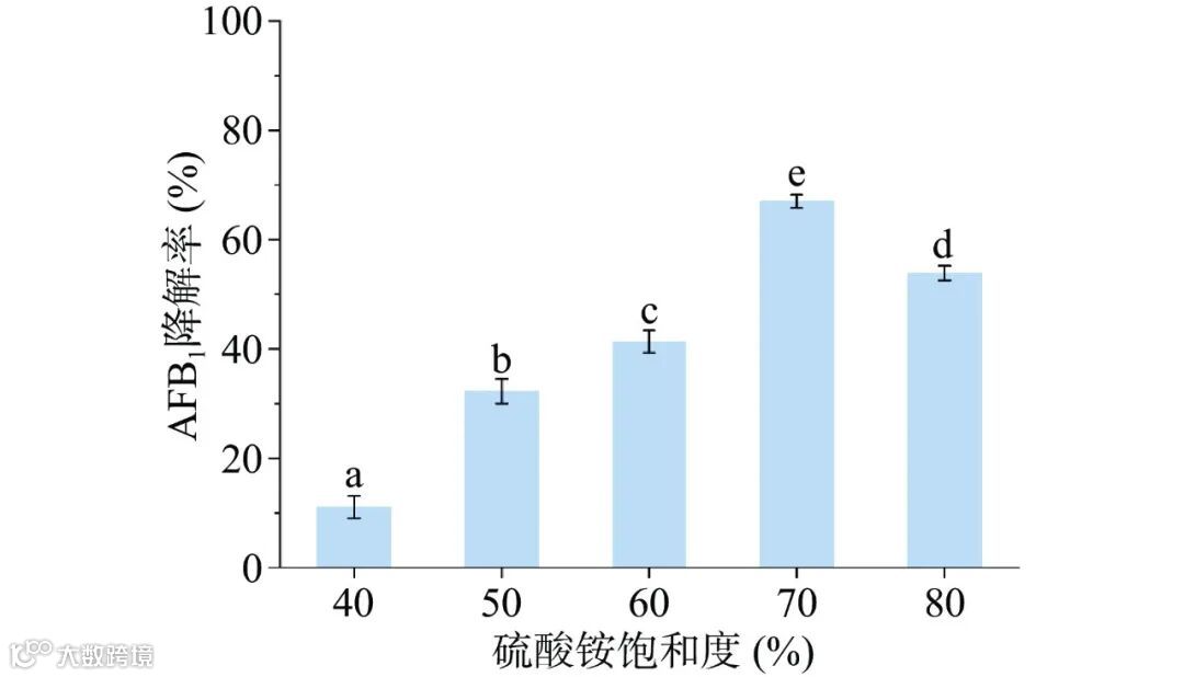 图 7 不同饱和度硫酸铵沉淀粗酶液降解AFB1的效果