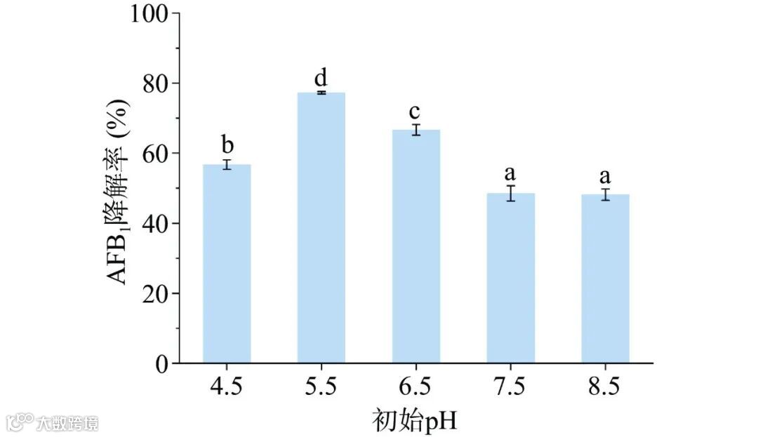 Figure 2. Effect of initial pH on the degradation rate of AFB1 by Am-07-22