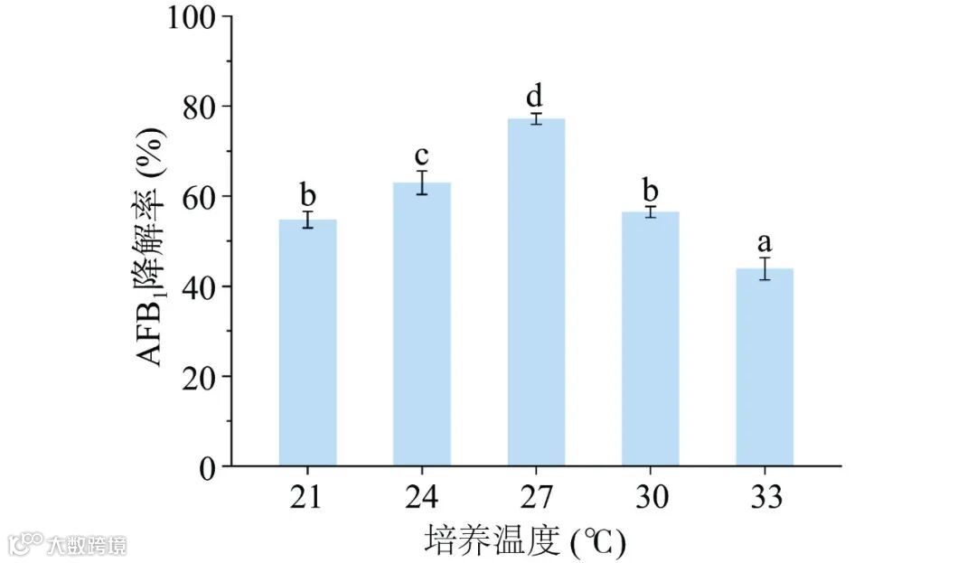 图 1 培养温度对蜜环菌Am-07-22降解AFB1降解率的影响