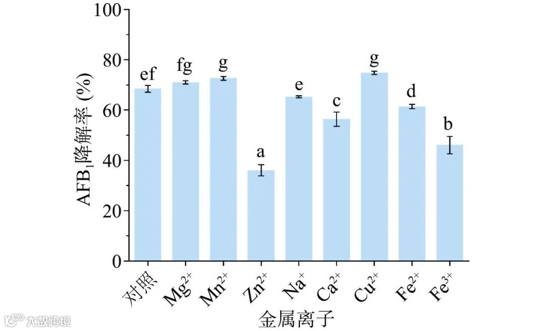 图 10 金属离子对粗酶液降解AFB1效果的影响