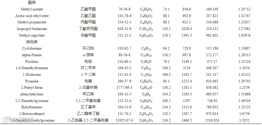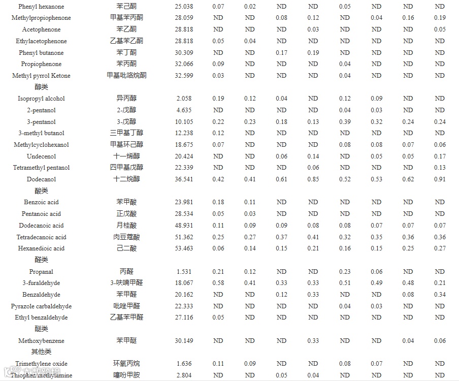 Table 1. Determination of volatile compounds in SCG of different hot-pressing conditions by GC-IMS
