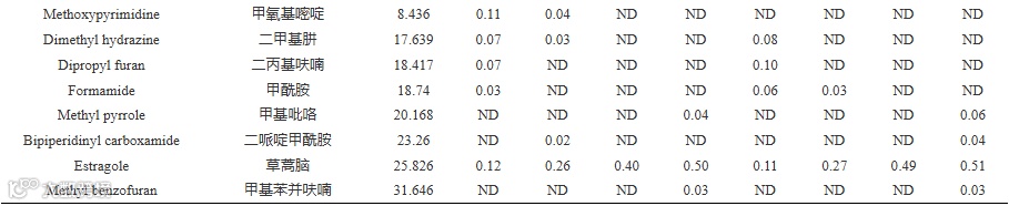 表 2 GC-MS检测不同热压条件SCG挥发性化合物