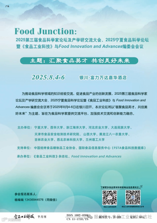 《食品工业科技》客座主编专栏征稿:地方特色食品:加工技术、感官品质、风味特性和营养健康☚
