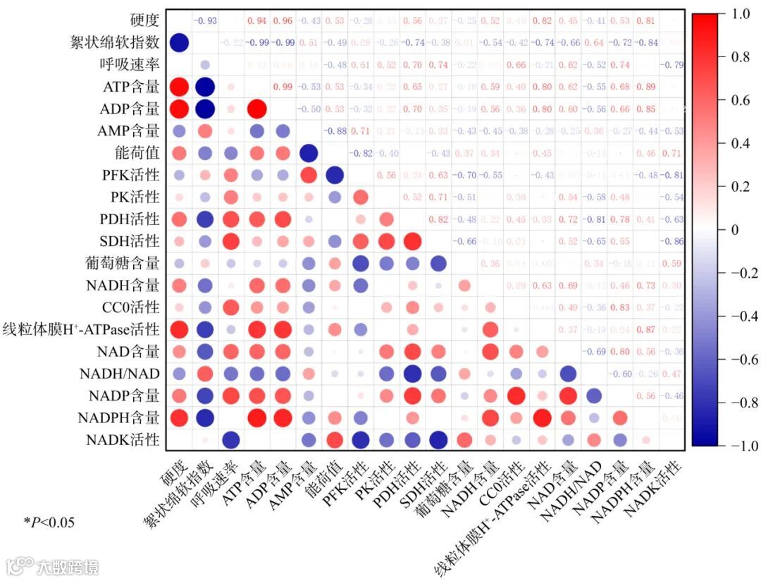 图 6 莲雾果实絮状绵软与能量代谢和呼吸代谢指标的相关性分析