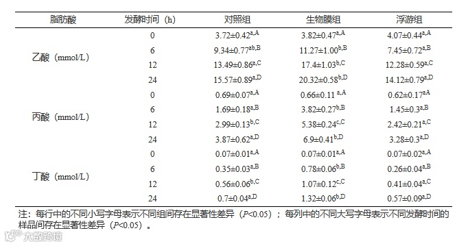 2.3.2 生物膜态长双歧杆菌对短链脂肪酸组成的影响