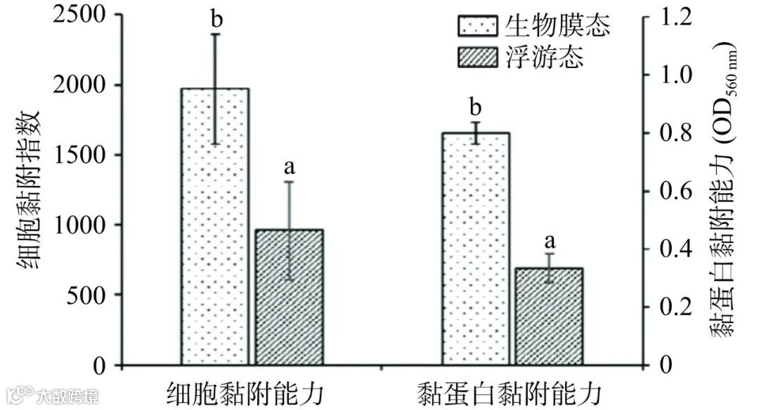 Fig.5 In vitro adhesion ability of biofilm-type and planktonic