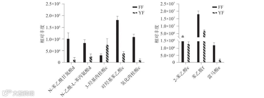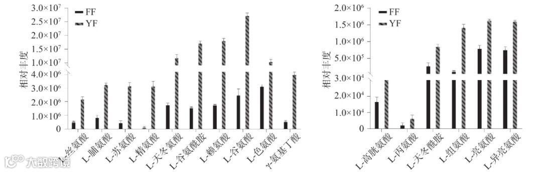 Figure 8. Relative intensity map of major amino acid compounds in Youxi black tea and Fu'an black tea