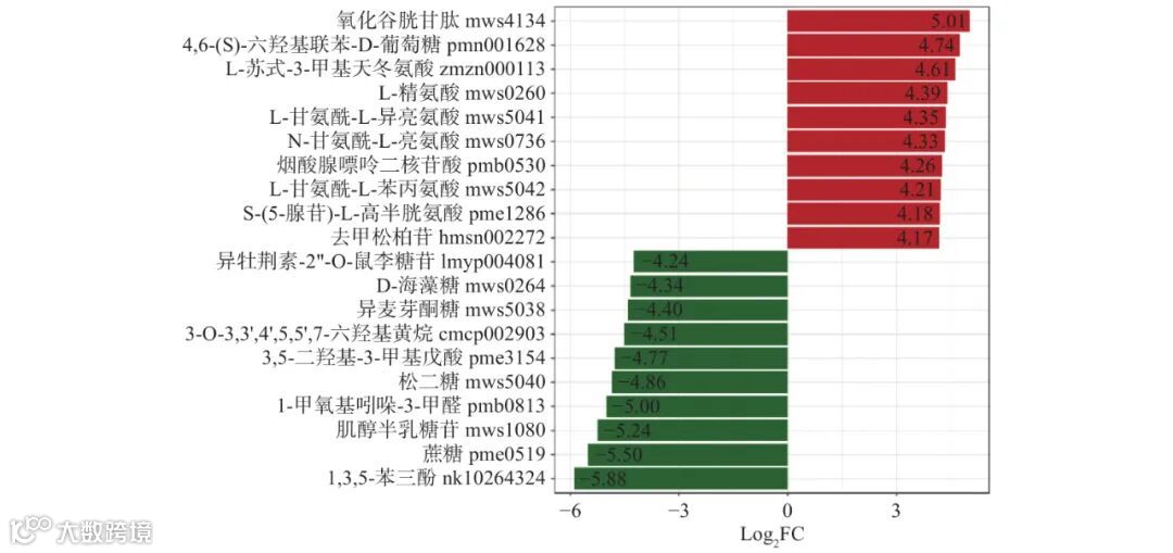 Figure 6. Twenty metabolites with the greatest difference in content between the samples