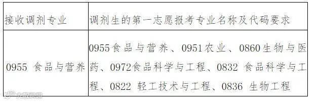 0703Z2食品化学、071010生物化学与分子生物学、0828Z1机械制造技术、0832食品科学与工程、086001生物技术与工程、086003食品工程、095135食品加工与安全、0955食品与营养、097200食品科学与工程、097201食品科学、100403营养与食品卫生学。