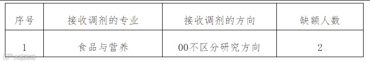 2. 086003食品工程专业-需调剂4人(限第一志愿专业代码为0860开头,初试科目二为201英语一或204英语二、科目三为302数学二)。