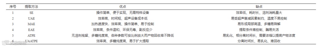 Table 1. Advantages and disadvantages of polysaccharides extraction methods