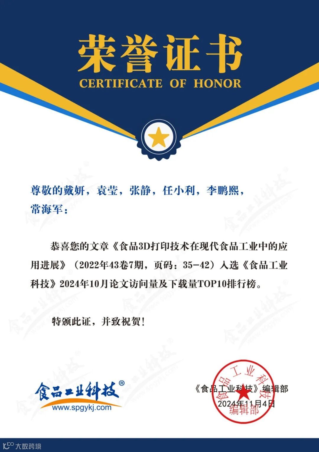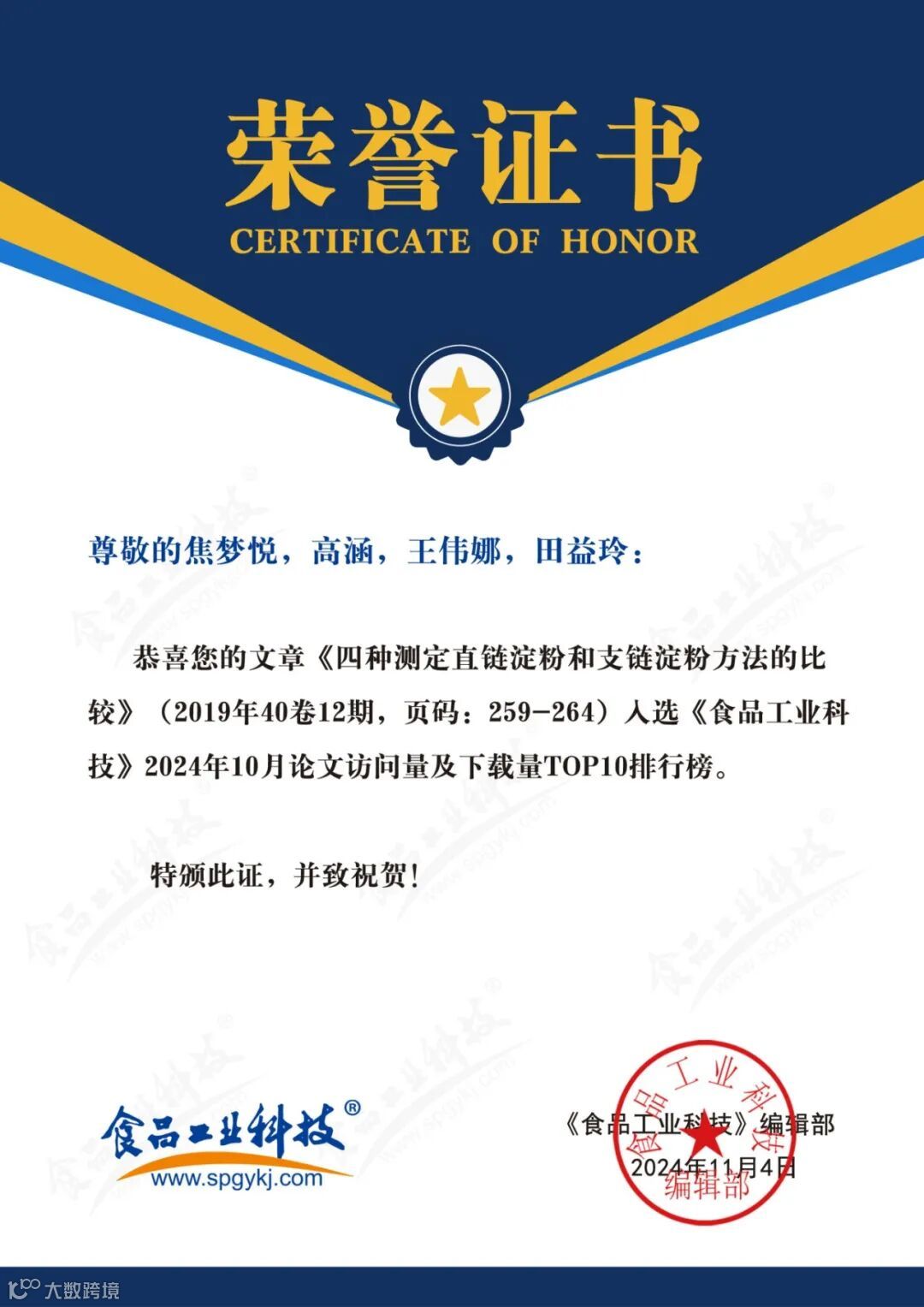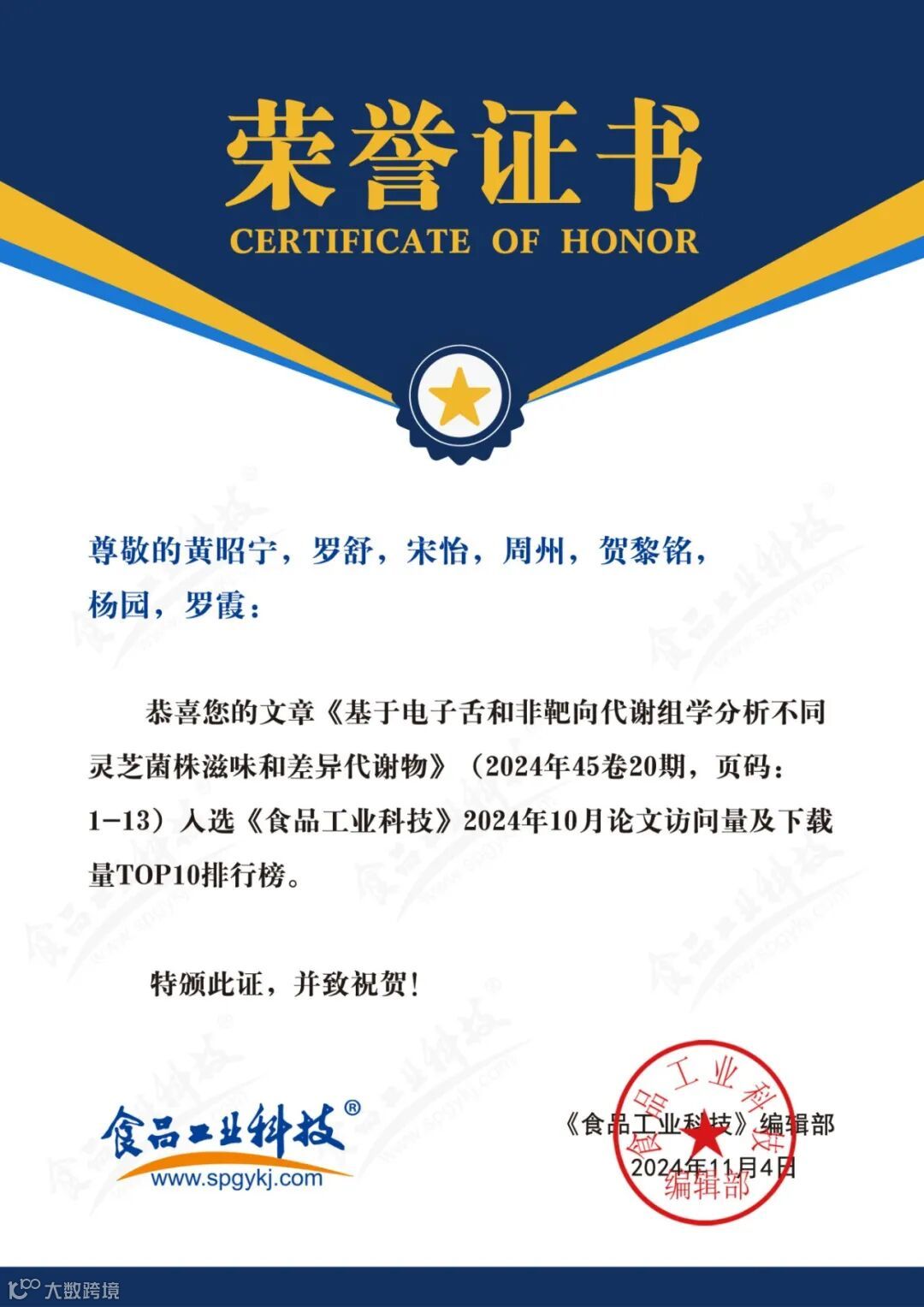 食品科学家论文汇总