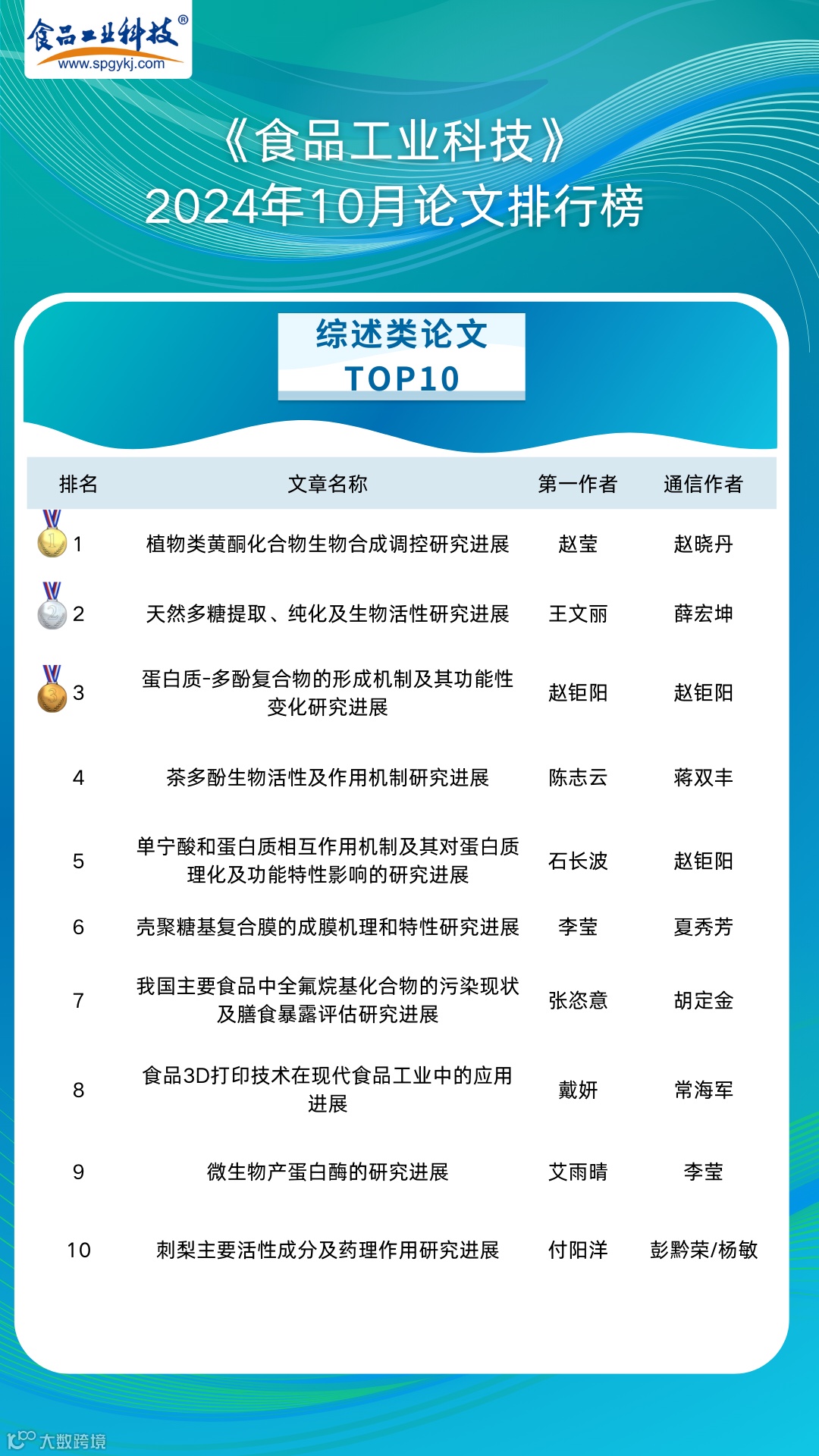 2024年11月4日,《食品工业科技》编辑部基于《食品工业科技》官网(http://www.spgykj.com/)数据,以《食品工业科技》自1979年见刊以来的全部论文为数据,统计2024年10月论文访问量及下载量排行榜TOP10,以对科学研究及食品学科发展起指导作用。