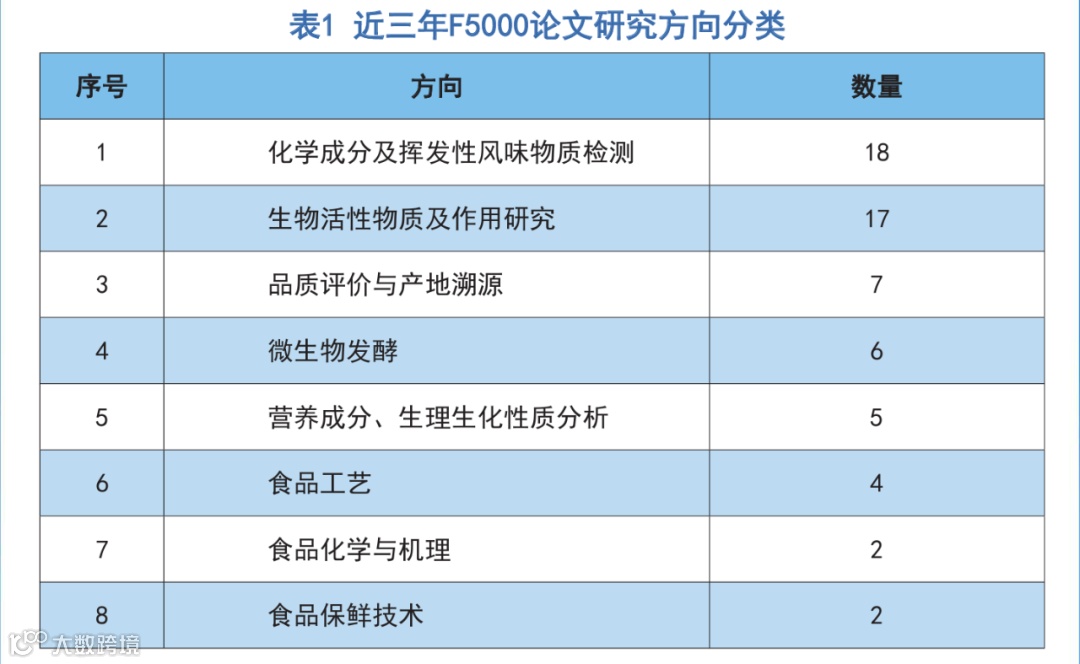 鉴于《食品工业科技》在F5000论文入选方面所取得的成绩,本文拟对F5000论文的研究方向进行分析。通过对这些高影响力论文的梳理,期望能够探求近三年食品领域的研究热点和发展趋势。希望通过此次解析,为相关学术提供方向指引,助力更多学者在该领域深入探索,推动食品学科的持续发展和创新突破。