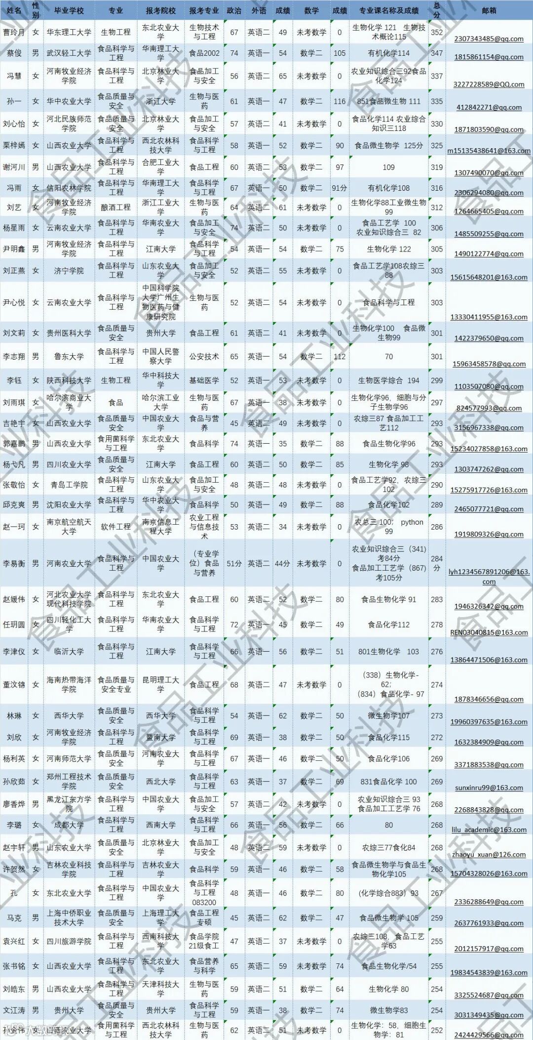 《食品工业科技》公益助力学生研招,图片显示度不佳,点击文末“阅读原文”或登录《食品工业科技》官网www.spgykj.com-考研调剂版块下载Excel版学生信息。图中隐去了学生的部分信息及电话,如有需要,请联系我们: