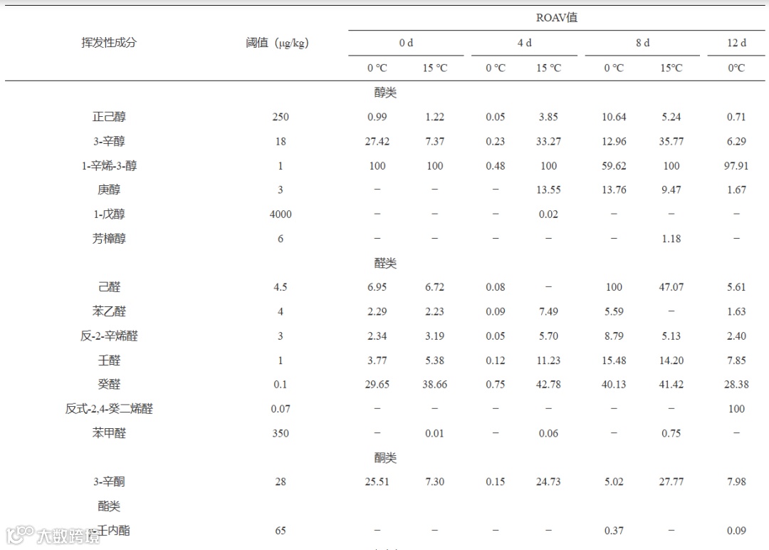 Table 3 ROAV values of volatile substances in Stropharia rugoso-annulata at different storage temperatures