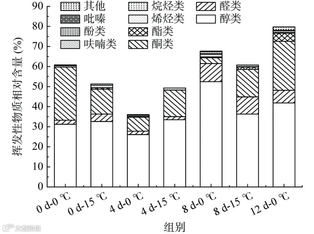 图 4 不同贮藏温度下大球盖菇的挥发性物质分类