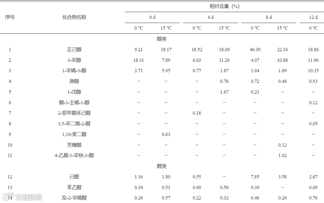 Table 2 Changes of volatile substances of Stropharia rugoso-annulata at different storage temperatures
