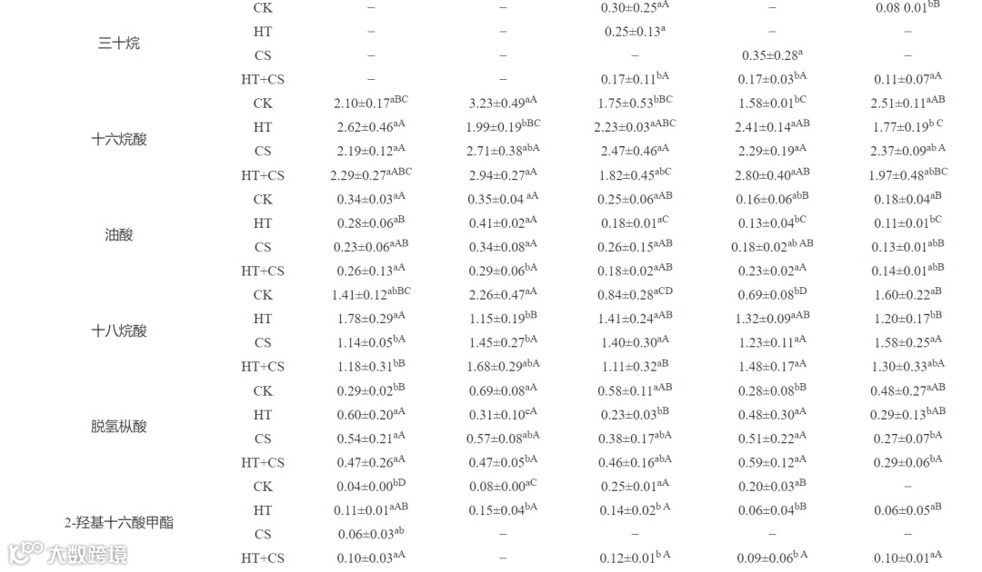 注:A:CK组;B:HT组;C:CS组;D:HT+CS组。