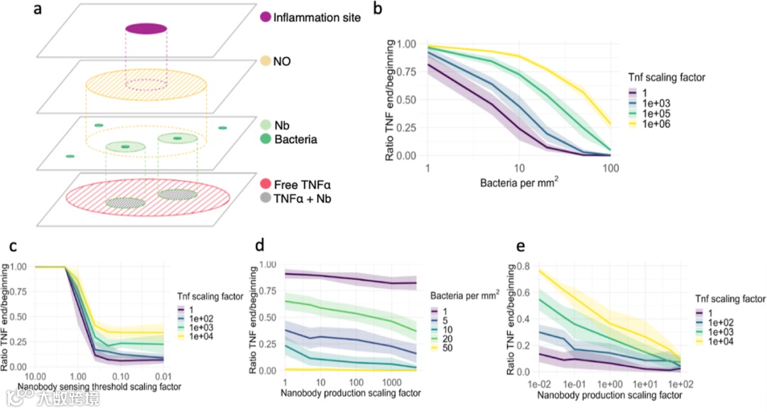 该研究还建立了一个数学模型,用于评估工程化益生菌系统在肠道炎症治疗中的关键参数,为进一步优化和设计提供了理论依据。
