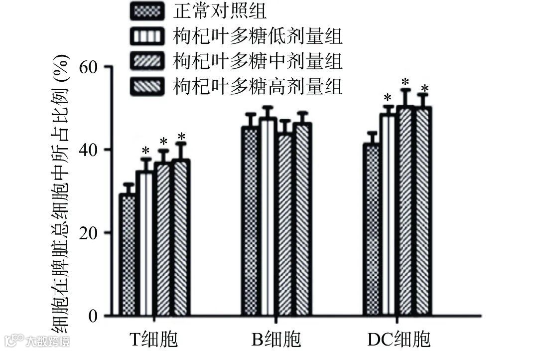 图 5 枸杞叶多糖干预后对小鼠脾脏淋巴细胞 数量的影响