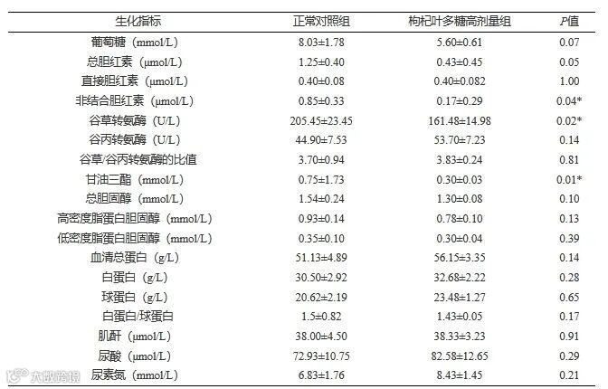 Table 2 Effect of Lycium barbarum leaves polysaccharides intervention on serum biochemical indexes