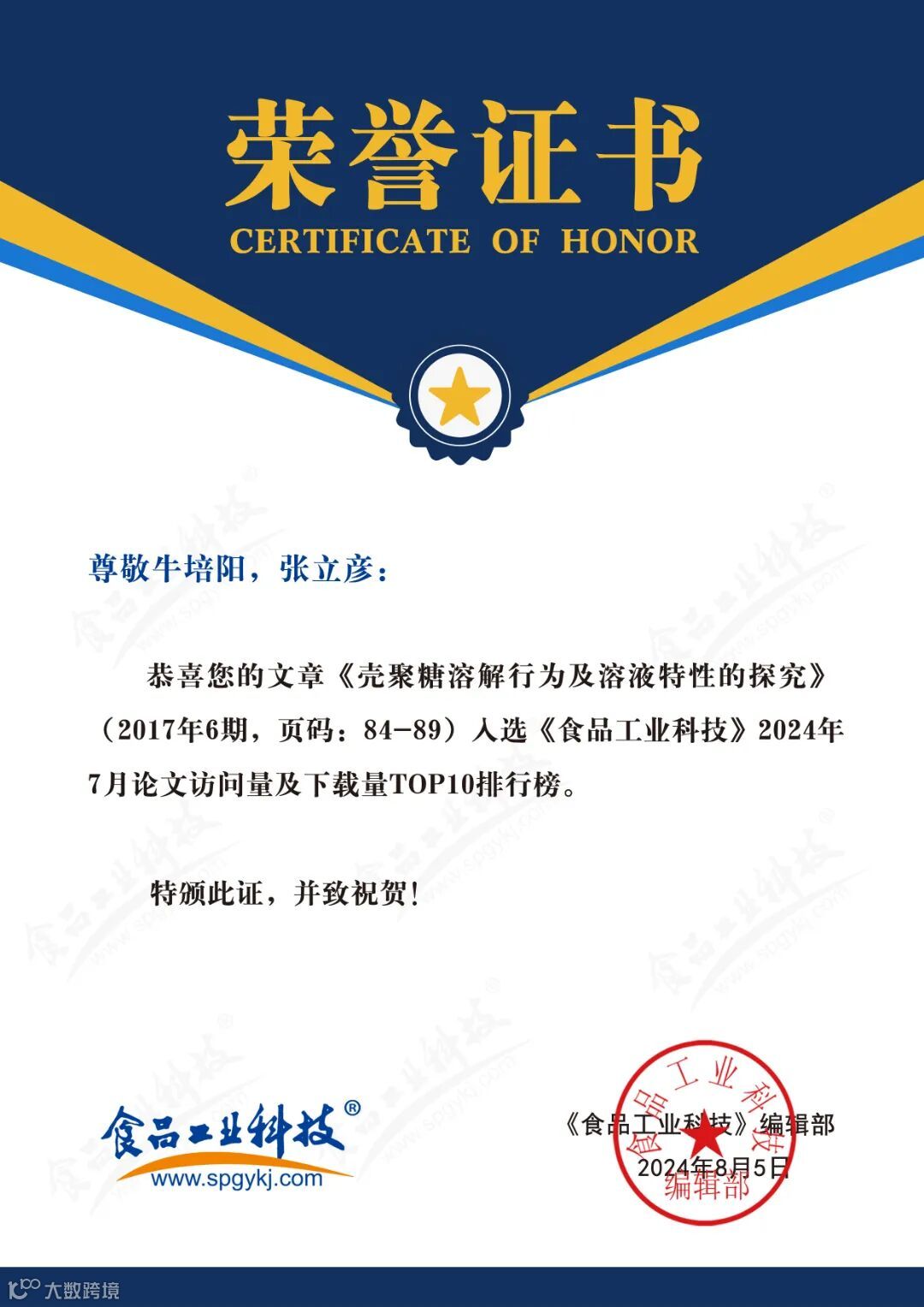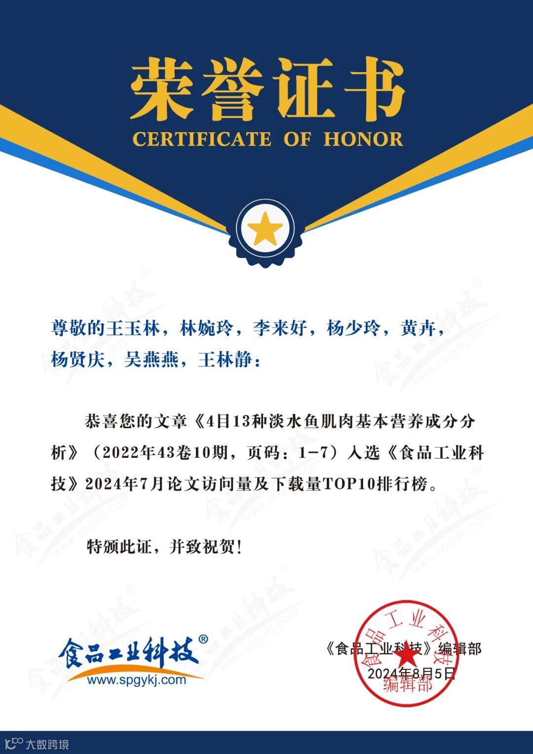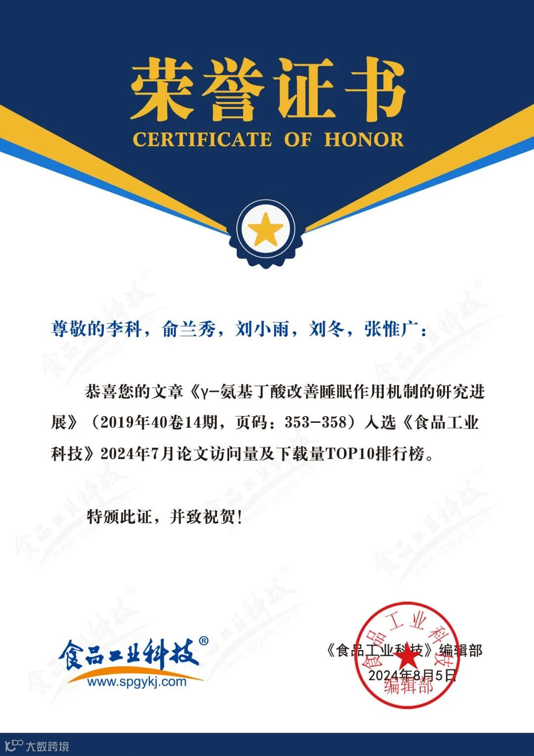 2024年6月起,《食品工业科技》编辑部每月将会公布上个月的文章下载量排行榜。《食品工业科技》将坚守办刊宗旨,秉承严谨细致、精益求精的工作态度,肩负时代赋予的社会责任,稳中求进、奋楫争先,为推动我国食品领域的发展做出更多贡献。
