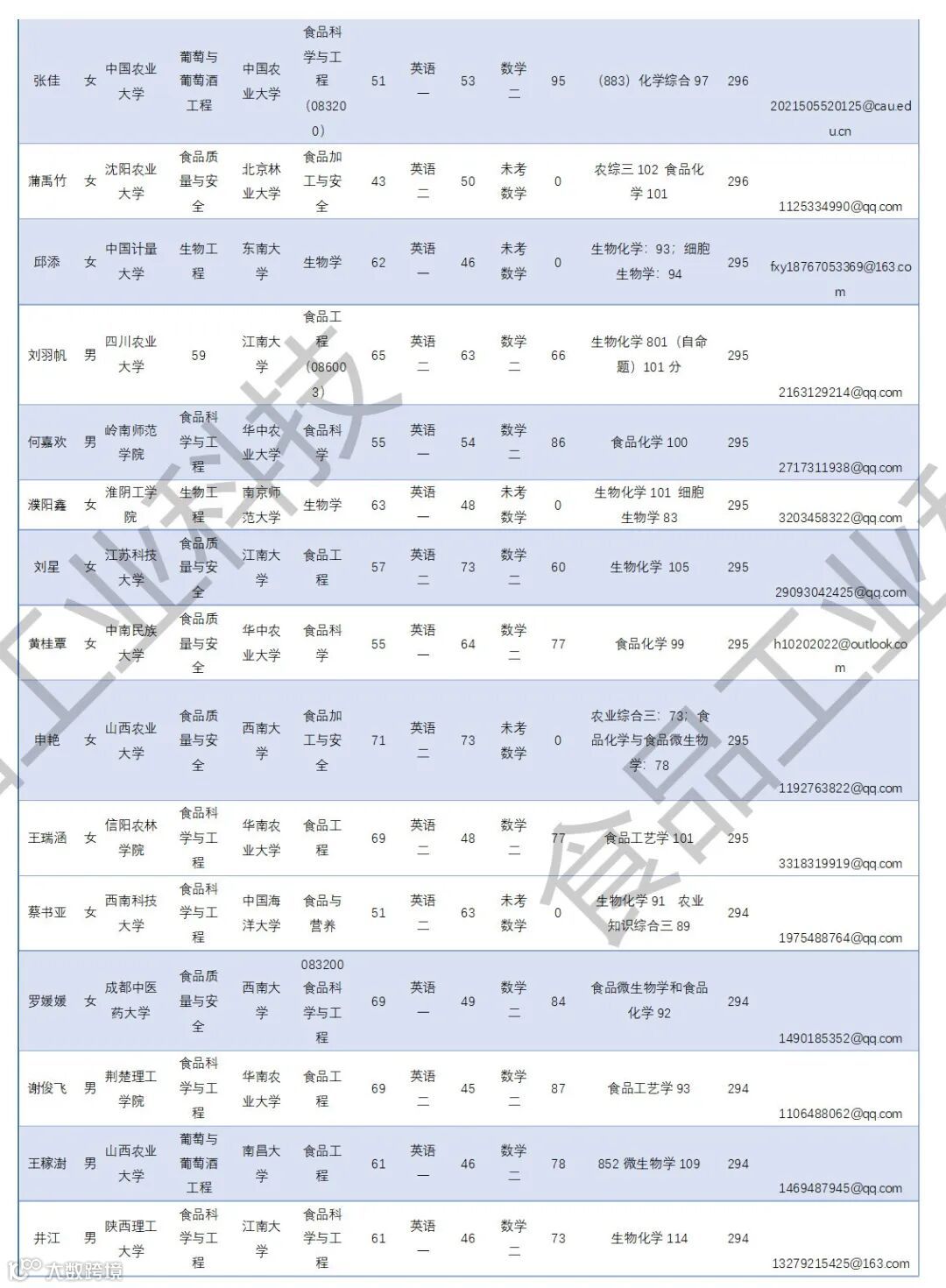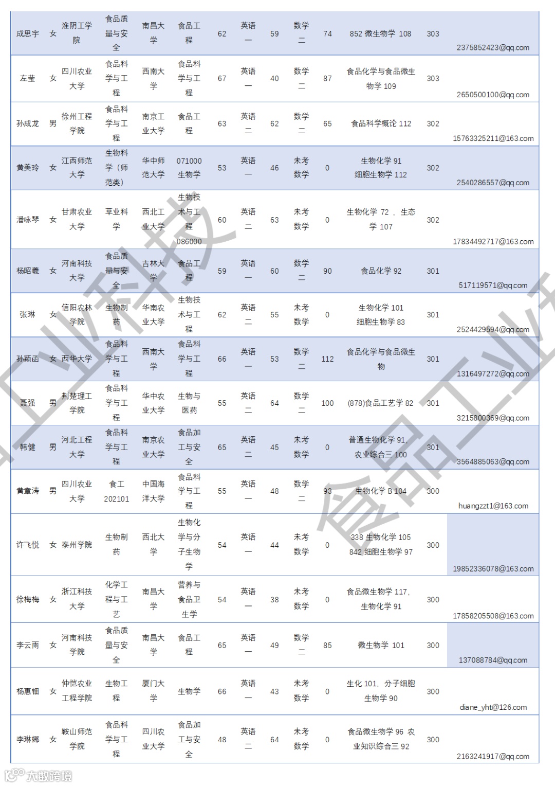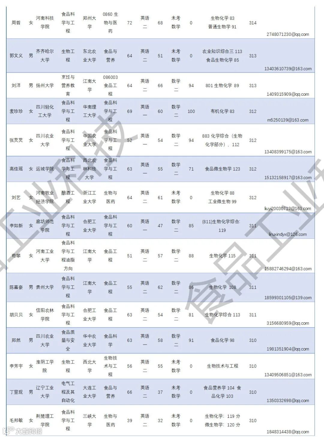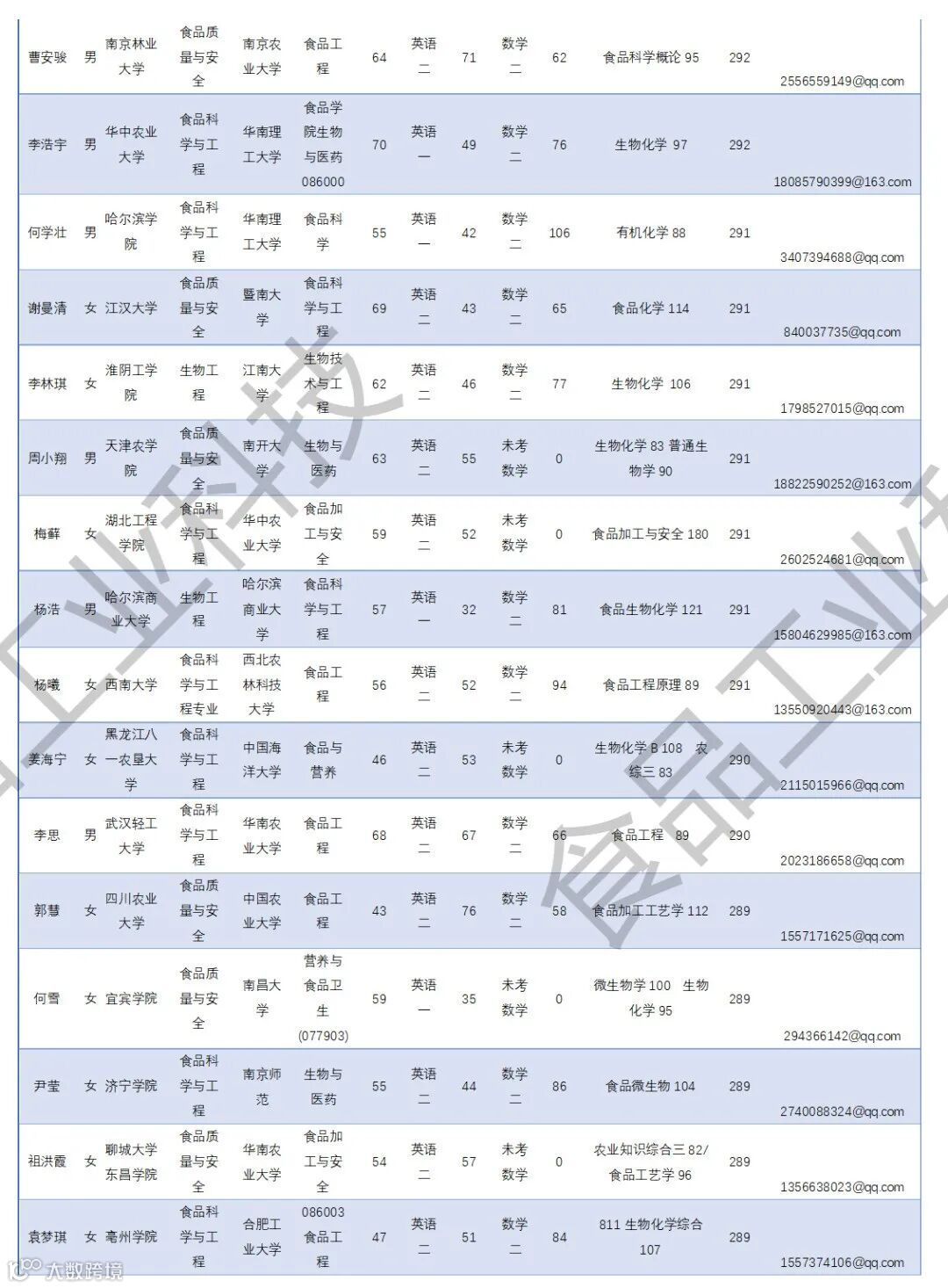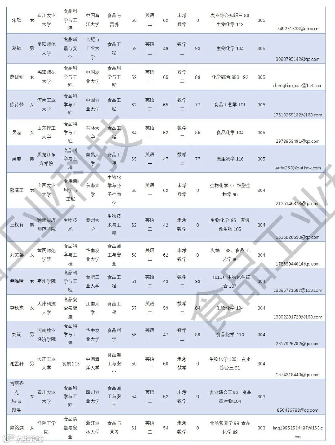 《食品工业科技》公益助力学生调剂,图片显示度不佳,点击文末“阅读原文”或登录《食品工业科技》官网www.spgykj.com-考研调剂版块下载excel版学生信息。图中隐去了学生的部分信息及电话,如有需要,请联系我们: