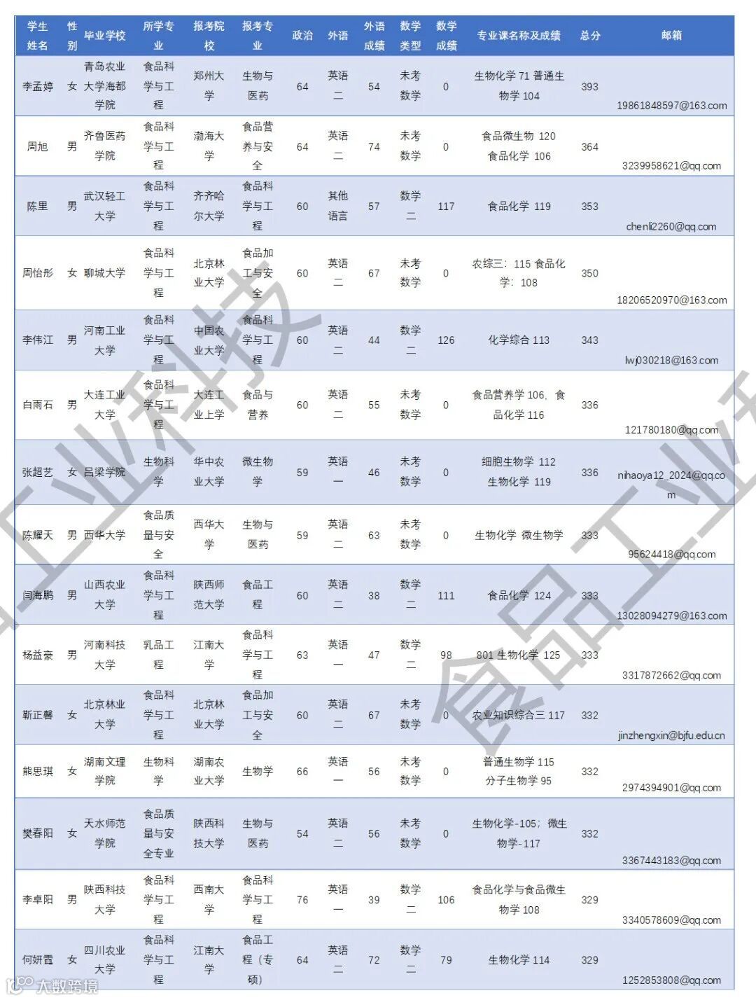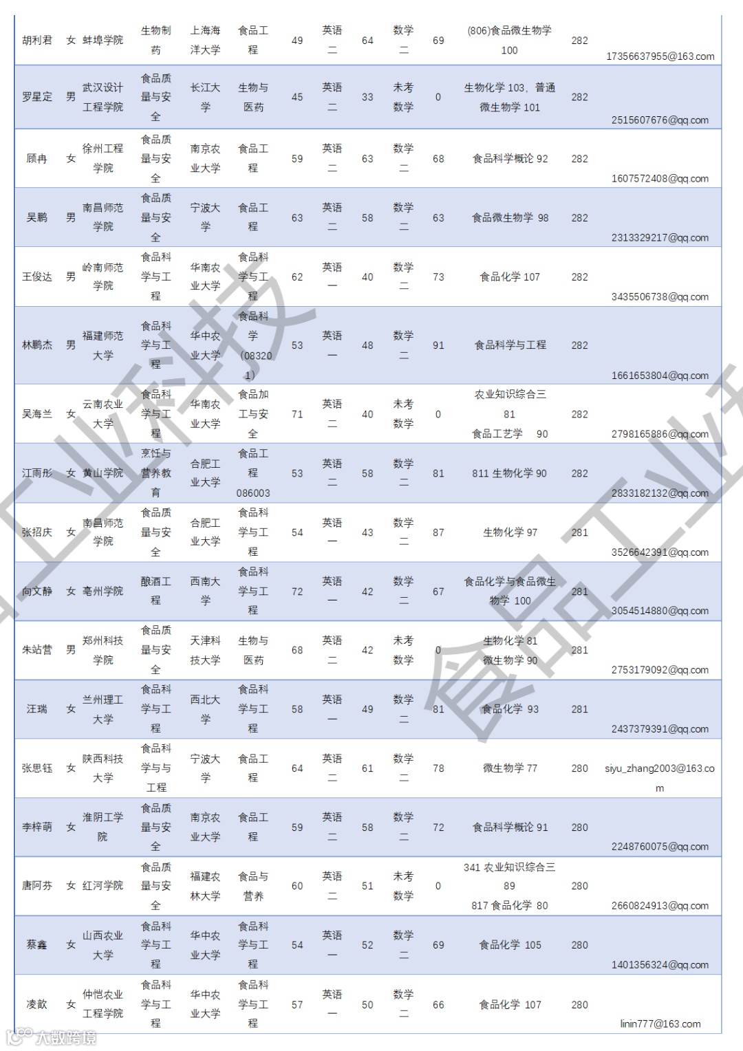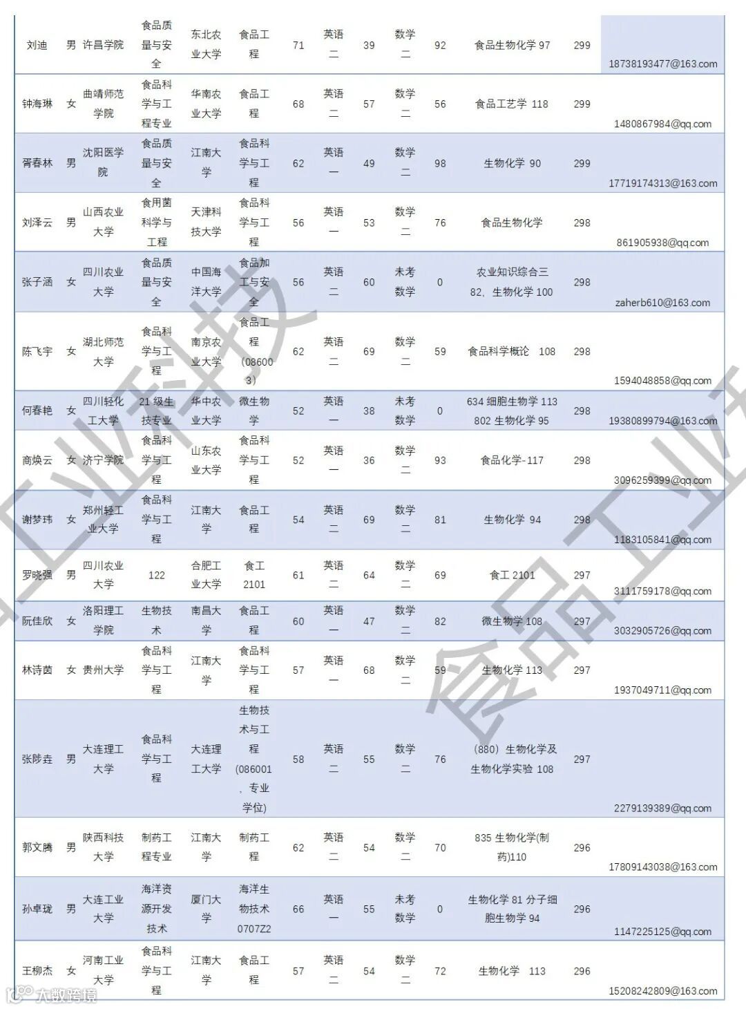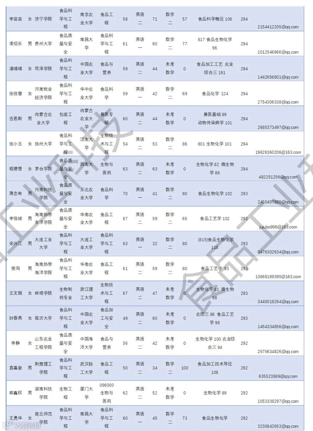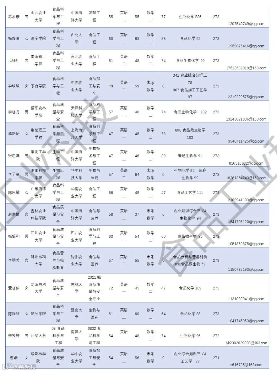 《食品工业科技》公益助力学生调剂,图片显示度不佳,点击文末“阅读原文”或登录《食品工业科技》官网www.spgykj.com-考研调剂版块下载excel版学生信息。图中隐去了学生的部分信息及电话,如有需要,请联系我们: